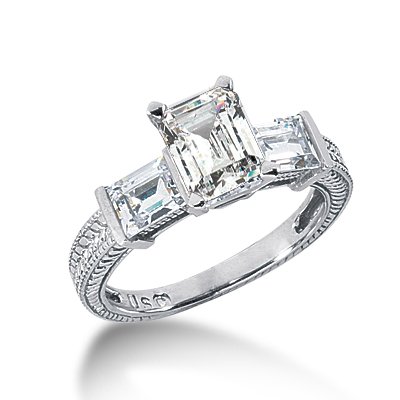1.1 Ct Diamond Engagement Ring Emerald Antique 14K White Gold Channel Review