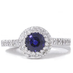 Genuine 1.10CT Blue Sapphire Diamond Pave Halo Engagement Ring 14K White Gold Review