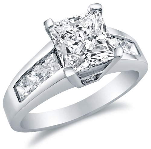 Solid 14k White OR Yellow Gold Princess Cut Solitaire with Princess Cut Side Stones Highest Quality CZ Cubic Zirconia Engagement Ring 1.75ct. Review